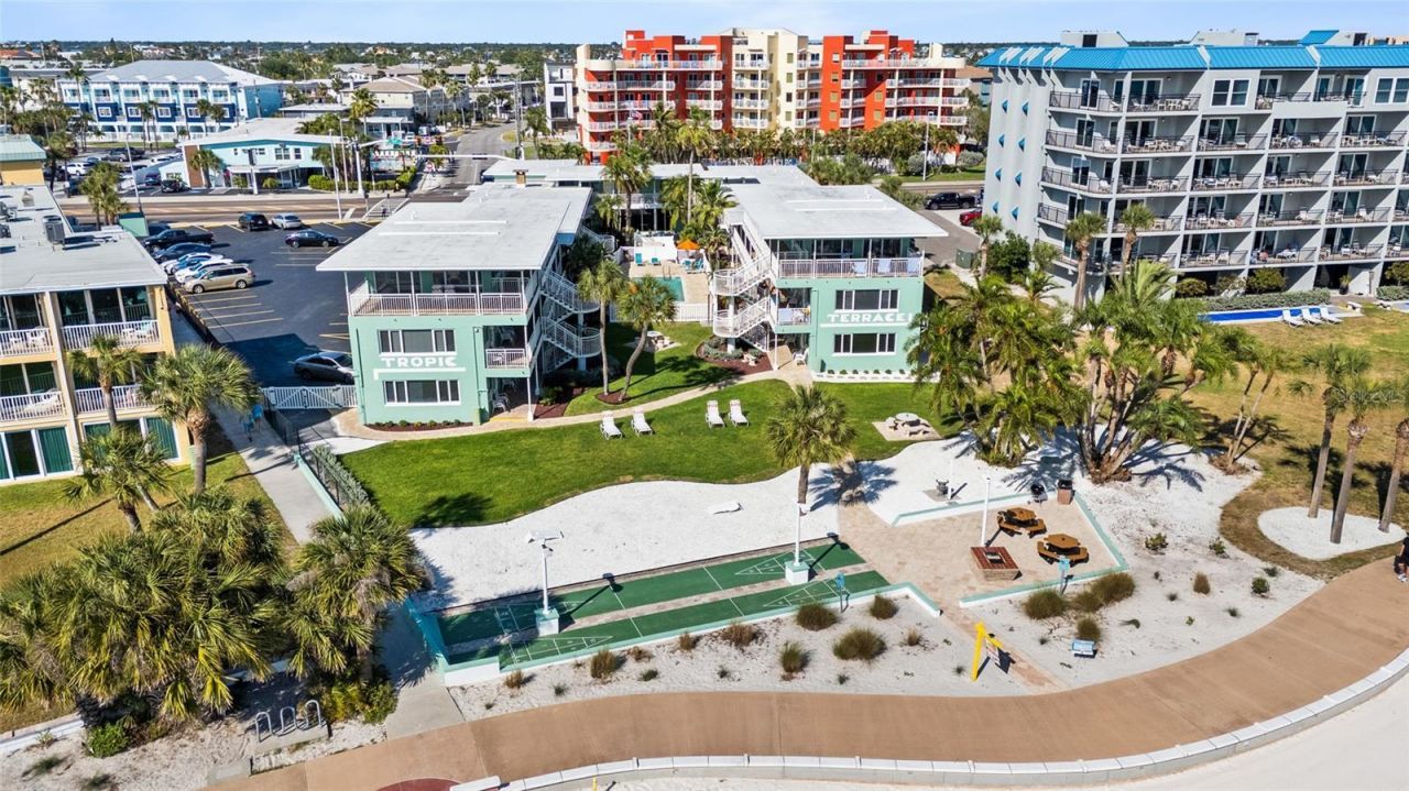 WELCOME TO PARADISE! Step into your dream beach lifestyle with this RARE retro coastal-chic, 2/bed 1.5/bath, fully furnished, turn-key condo in the highly desirable Tropic Terrace community that is situated directly on the Treasure Island Beach Boardwalk! This bright and airy corner unit, located high and dry on the second floor, features an open concept, two dining spaces, primary-suite w/en-suite bathroom, fully equipt kitchen with solid wood cabinetry, stainless steel appliances, solid surface counter-tops & breakfast bar, a chic semi-private office space, new flooring in main living area, fresh paint, new furniture (including a sleeper sofa), and new furnishings throughout, offering the ideal blend of comfort, style, and coastal charm-ready for you to enjoy from day one!This boutique-style, beachfront resort of Tropic Terrace, places you just steps from the pristine sands of the Gulf of Mexico. Enjoy direct beach access and soak in the beauty of partial Gulf views, world renowned sunsets, and the properties grounds from your own private retreat. Whether you're sipping your morning coffee or unwinding with your favorite cocktail after a day at the beach or on-site pool, every moment here feels like a vacation. This versatile property is ideal as a full-time residence (no restrictions/owner could live here full-time), a relaxing getaway, or a high-performing short-term rental. With on-site/in-house management available, generating rental income is effortless and stress-free. Even better, the condo fees cover EVERYTHING: electricity, water, sewer, trash, cable, internet, and access to the community pool and on-site activities such as shuffle board, picnic tables with grill, and newly renovated indoor game & activity room -offering exceptional value and convenience for you, your personal guests and renters! Located directly on the boardwalk and just steps from vibrant restaurants, lively beach bars, unique shops, you will have front row seats to Treasure Island's world renowned events including Sanding Ovations, Treasure Island Kite Festival, The National Volley Ball Tournament & many more, providing endless entertainment at your fingertips! Zoned for nightly rentals, this is a rare opportunity to maximize your investment while enjoying the ultimate beachside lifestyle. ALL SPECIAL ASSESSMENTS HAVE BEEN PAID IN FULL, UNIT COMES WITH 2 ON-SITE PARKING PASSES, so grab your beach bag and start living the dream!
